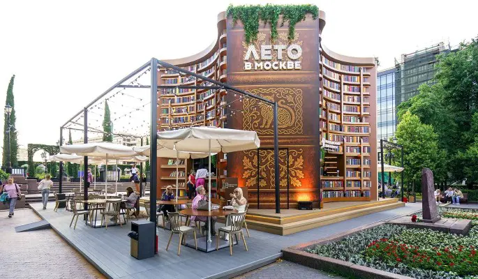 Оформление площадки возле фонтана Витали также радует глаз: высокие книжные полки, задекорированные пышной зеленью, и мягкие кресла словно приглашают отдохнуть за хорошей книгой или лекцией. А на Сретенском бульваре встречает уютная кофейня-читалия, где арома кофе гармонично сочетается с ароматом свежих страниц.