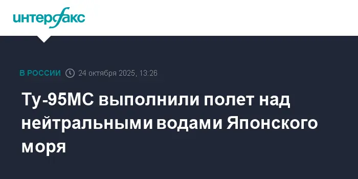 Москва. 24 октября. Стратегические ракетоносцы Ту-95МС осуществили плановый полет в небе над нейтральными акваториями Японского моря. По информации Минобороны РФ, выполнение задачи проходило в соответствии с намеченным планом.