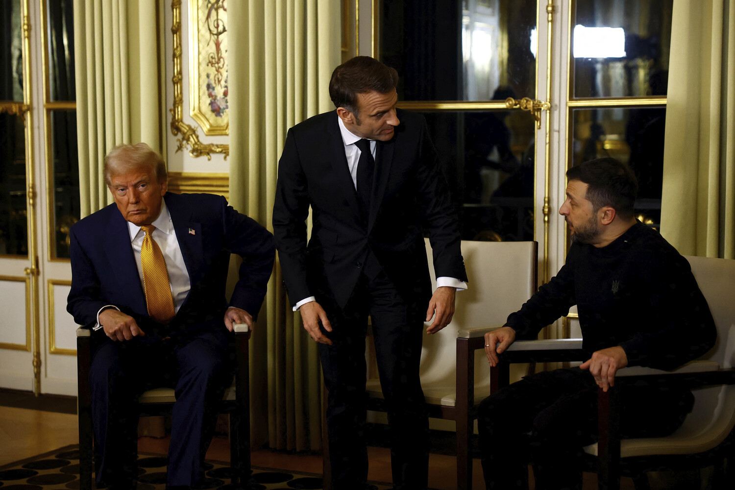 Трехсторонняя встреча состоялась в преддверии торжественного открытия отреставрированного собора Парижской Богоматери, на которое прибыли многочисленные мировые лидеры. После получасовых переговоров участники направились на церемонию открытия знаменитого собора, завершив встречу дружественным рукопожатием.