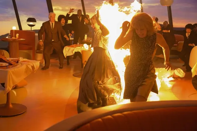 Первые минуты фильма обволакивают зрителя ностальгией: играющий джаз, мерцающий свет, легкая атмосферная музыка — здесь и старомодный уют, и ощущение безмятежности. Молодая пара отправляется на романтическое свидание в новый стильный ресторан, венчающий архитектурную башню с панорамной площадкой. Он готов сделать предложение, она — сообщить радостную новость о беременности. Оба волнуются, но их счастье так хрупко: стеклянный пол площадки внезапно не выдерживает, и трагедия разворачивается с пугающей реалистичностью.