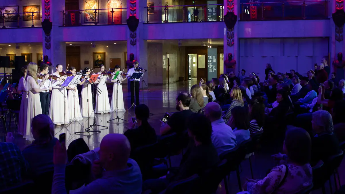 Накануне главного весеннего праздника посетителей ждет насыщенная культурная программа в рамках конкурса "Журавли Победы". Особое место в расписании занимает концерт "Русский калейдоскоп", где на сцене выступят лауреаты фольклорного отделения музыкальной школы имени Эдварда Грига. Эмоциональным центром станет премьера спектакля "Дети войны" от школьного театра "Дети Станиславского", посвященного детям, потерявшим матерей в годы Великой Отечественной войны. На сцене прозвучат проникновенные стихи Вероники Тушновой, Мусы Джалиля, Самуила Маршака, Юлии Друниной. Каждый акт постановки — это напряженный диалог с прошлым, бережное прикосновение к судьбам тех, кто вынес на своих плечах боль утраты, но не сломился.