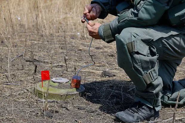 По его объяснению, для детонации такой мины требуются дополнительные ухищрения — например, установка поверх нее деревянного настила.