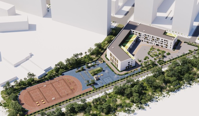 Учебное заведение на 825 учеников оснастят IT-полигоном, многофункциональными спортзалами и актовыми залами на 200 человек каждый. Во дворе организуют стадион с зонами для волейбола, баскетбола и мини-футбола, а также площадки для мероприятий и отдыха.
