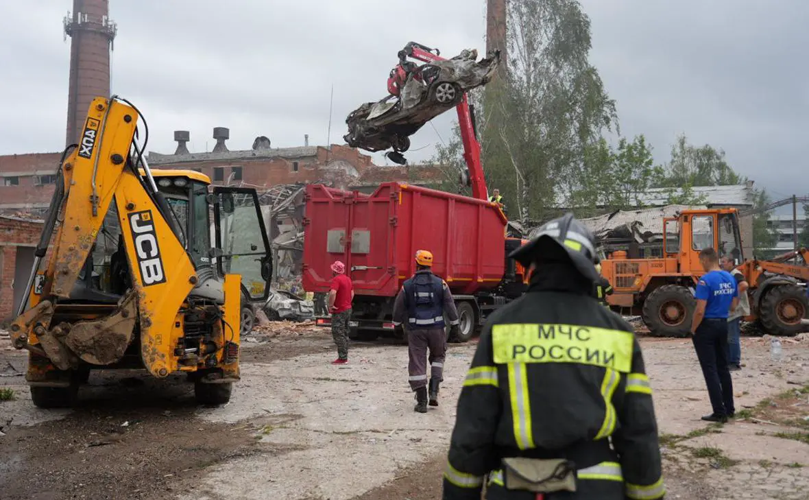 Источник: Разбор завалов на месте взрыва на территории Загорского оптико-механического завода в Сергиевом Посаде в 2023 Фото: пресс-служба губернатора Московской области / РИА Новости. rbc.ru