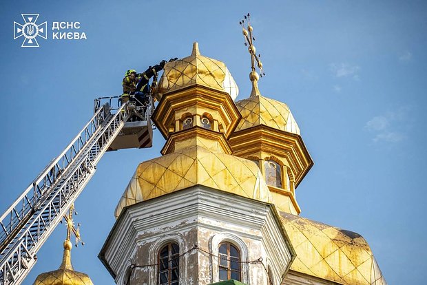 Над Киево-Печерской лаврой нависла тревожная новость: массивный золотой крест, венчающий башню Церкви Всех Святых, частично обрушился. По данным экстренных служб, конструкция едва удерживается, создавая угрозу дальнейшего разрушения. Спасатели уже прибыли на место, чтобы предотвратить катастрофу.